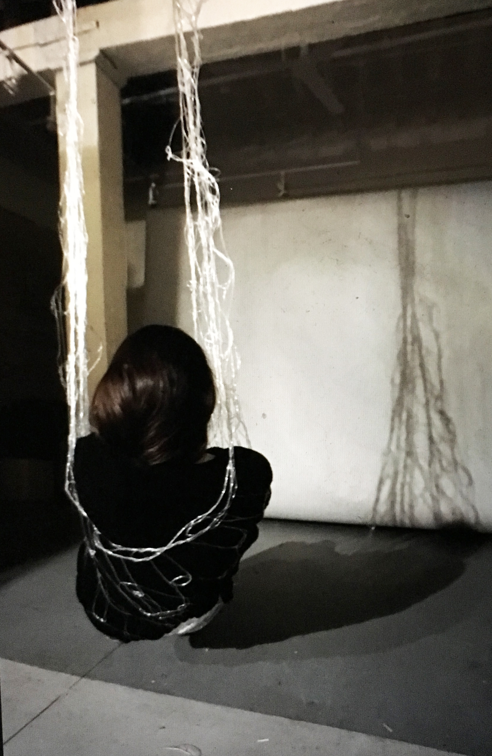 The user of Inhabitable Lace is suspended in the world by the support of a single ethereal piece of lace. As humans, we move through space and time with many intricate and invisible support systems. The creation and nomadic installation of Inhabitable Lace aims to give viewers the dual experience of visualizing a human existing without support and then discovering the structure’s invisible systems. While we may sometimes feel that we are living an individual existence, there is a network of past, present, and future systems that influence our experience and perceptions of that experience.