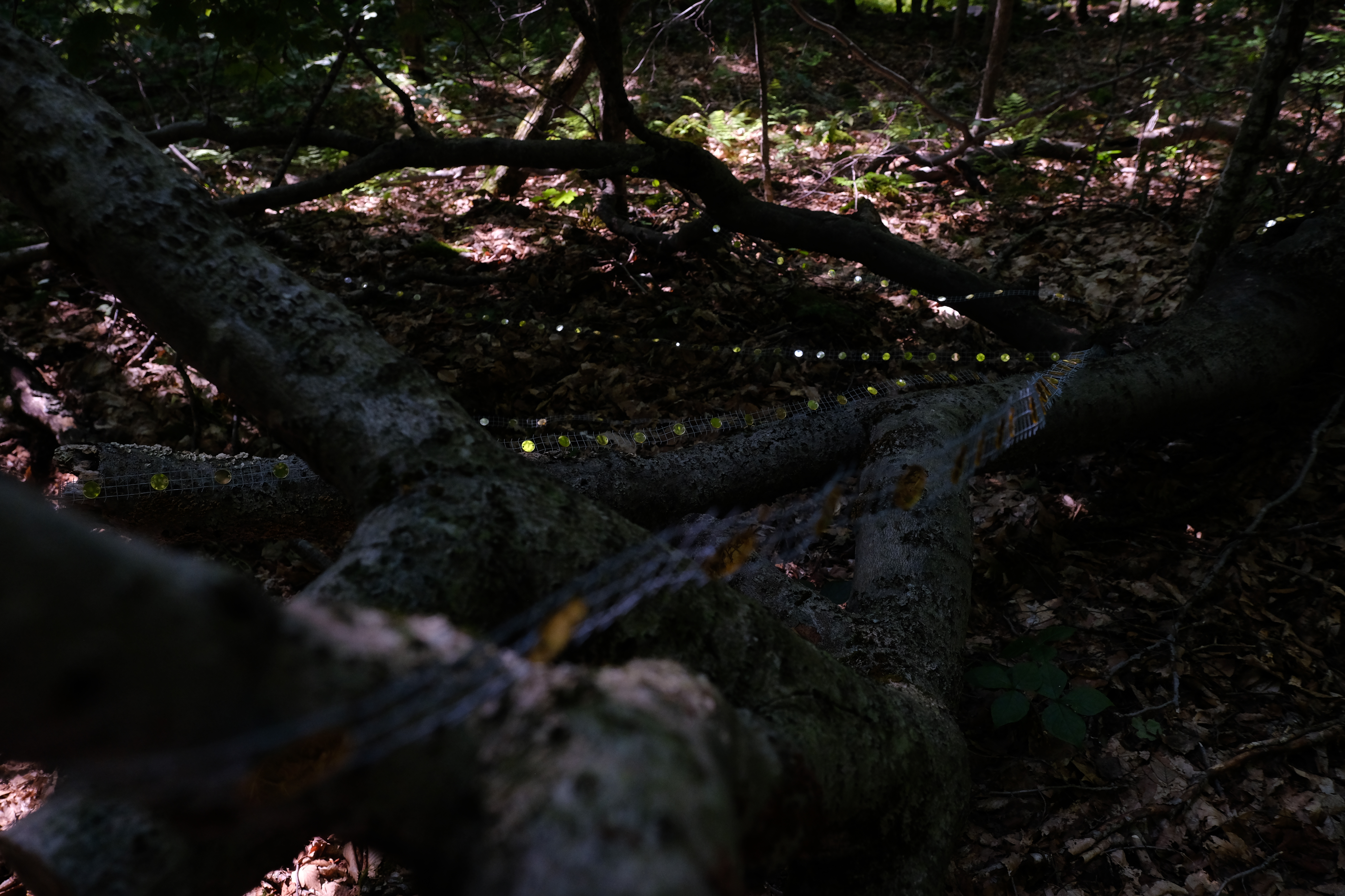 I created three installations on the trails. Each reflect qualities and patterns that were necessary for me to study in this time of transformation. I was wrestling with my constricting unconscious beliefs of architecture, nature, gender, race, and ornament within me and around me. I observed how these beliefs inhibit creativity to move through me and utilized art making to unravel the rigid mind.